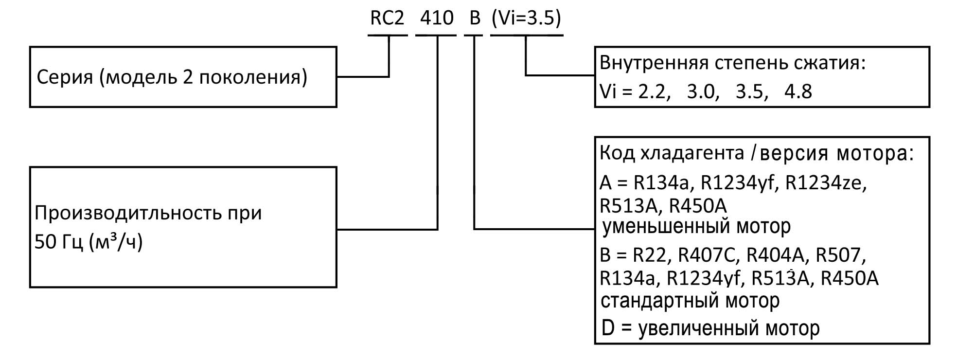 — RC2_A (малый электромотор, среднетемпературное применение, оптимизированы для R134a)