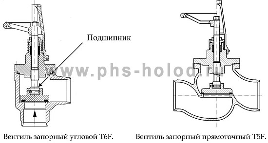 Вентили, регулирующие поток (T5F-R и T6F-R) имеют ряд конструктивных отличий от запорных вентилей (T5F и T6F).
