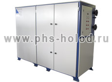 Главная > Услуги компании > Производство холодильного оборудования > Установки охлаждения жидкости > Варианты исполнения и комплектации чиллеров Vactekh > Чиллеры с выносным конденсатором Чиллеры с выносным конденсаторомКомплектация «с выносным конденсатором» используется в случае невозможности размещения оборудования со значительным тепловыделением внутри цеха или машинного отделения (для примерной оценки – тепловыделения в конденсаторе (в кВт) на 30% выше, чем холодопроизводительность чиллера (в кВт)). В отапливаемом помещении устанавливается сам чиллер, а конденсатор воздушного охлаждения монтируется на крыше, рядом со зданием или на стене здания. Для некоторых восточных регионов России, где температура зимой в течение длительного периода времени держится на уровне – 30 …- 35С, это единственный вариант комплектации водоохлаждающих установок холодопроизводительностью более 50-100 кВт. При заказе чиллера с выносным конденсатором заказчику поставляется два модуля : холодильный блок (сам чиллер) и конденсатор воздушного охлаждения. В зависимости от производительности установки комплектуются выносными конденсаторами собственного производства, производства фирмы Searle (Англия) или HTS (Чехия). Если чиллер с выносным конденсатором эксплуатируется в зимний период времени (при температуре окружающего воздуха ниже 0 С), то его оборудуют системой зимнего пуска, представляющей систему перепускных клапанов во фреоновом контуре, которая позволяет включиться чиллеру после длительной стоянки при низкой температуре окружающей среды. Все клапаны системы зимнего пуска встраиваются внутрь холодильного блока при его производстве.