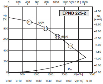 Напряжение электропитания – 400 В. Частота тока – 50 Гц. Максимальная потребляемая мощность электродвигателя – 0,75 кВт. Максимальный рабочий ток – 1,74 А. Пусковой ток – 12,18 А. Скорость вращения – 2840 об/мин. Максимальная температура окр. среды - +60°С. Степень защиты – IP55. Масса – 18.5 кг. Цена вентилятора EPND 225-2