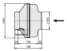 Диаметр входного и выходного патрубков для подсоединения к каналу – 160 мм. Напряжение электропитания – 230 В. Частота тока – 50 Гц. Максимальная потребляемая мощность электродвигателя – 0,07 кВт. Максимальный рабочий ток – 0,3 А. Пусковой ток – 0,45 А. Скорость вращения – 2380 об/мин. Максимальная температура окр. среды - +70°С. Степень защиты – IP44. Масса – 3.4 кг. Цена вентилятора R 160